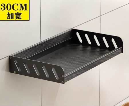 20cmX30cm, 黑色铝合金无支架悬浮式挂墙置物架。