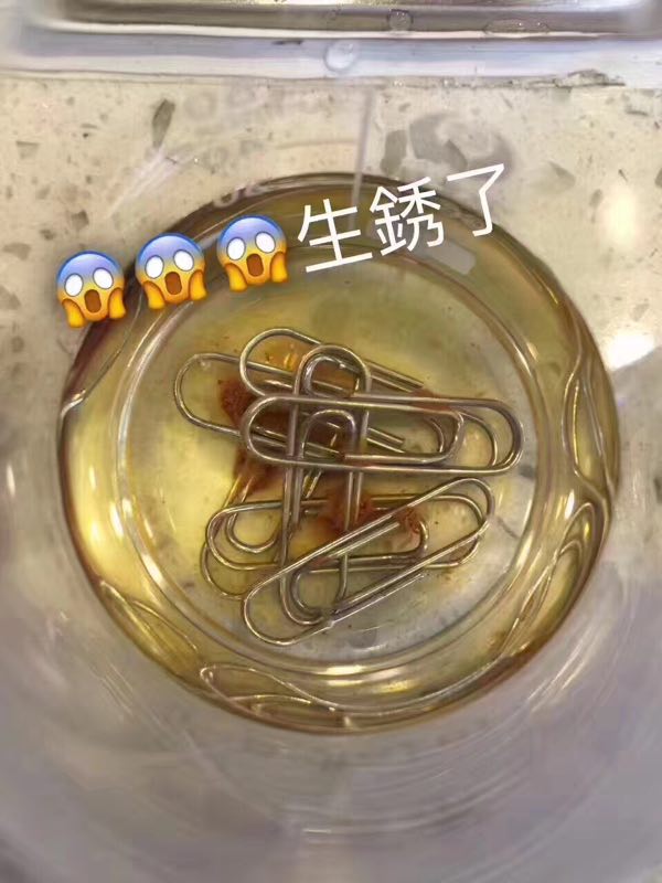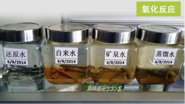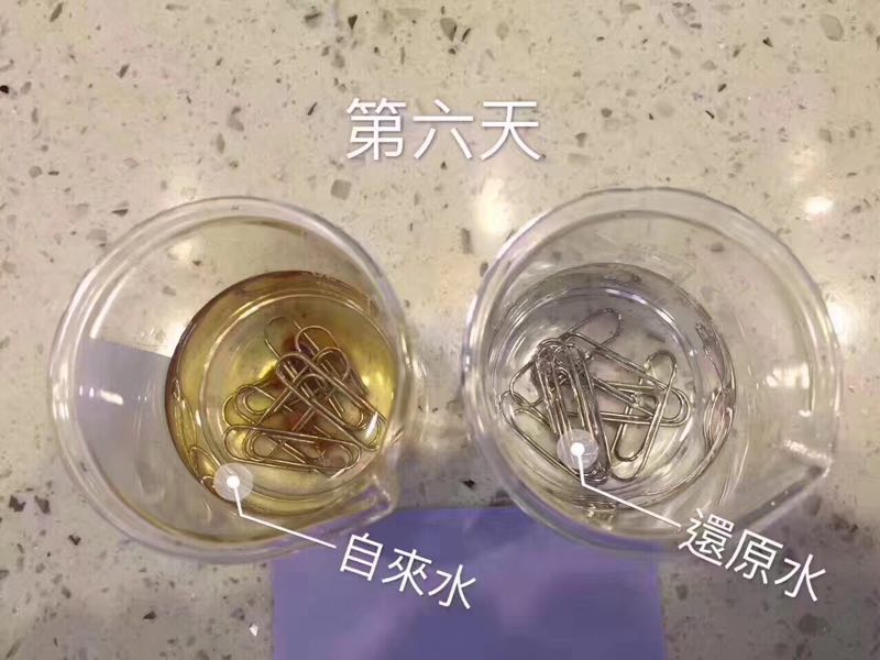 什麼叫氧化?金属生锈就是氧化的一种。什么叫还原?还原就是氧化的逆转。从实验中看出,自来水令回形针被氧化得更快,而还原水有很强的抗氧化能力。